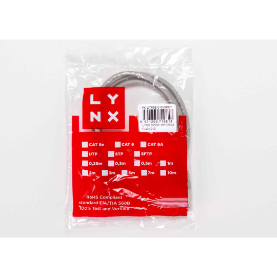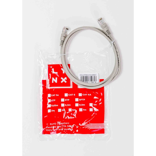 LYNX patch kabel Cat5E, UTP - 0,1m, šedý (prodej po 10 ks)