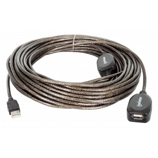 Use the Manhattan Hi-Speed USB Active Cable to connect a computer USB port to a USB device almost anywhere in the room. Daisy-chain 2 cable extensions to provide a convenient, 40m (131-ft.) connection. Manhattan Hi-Speed USB Active Cable with built-it repeater is fully-compliant with USB 1.1 and Hi-Speed USB specifications to help devices operate at maximum performance. Plug-and-play capability, Windows/Macintosh versatility and no external power or driver requirements help provide greater flexibility in computer and peripheral placement and office layout.