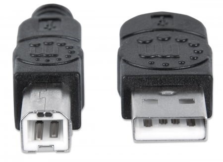MANHATTAN Hi-Speed USB 2.0 Device Cables easily connect USB peripherals and accessories with desktop and notebook computers. Ideal for use with many USB external enclosures, hubs and other hot-swap, Plug and Play devices, MANHATTAN Hi-Speed USB 2.0 Device Cables support data transfer rates up to 480 Mbps on Windows and Mac systems for fast, reliable transmissions. Gold-plated contacts, shielding and fully molded boots with strain relief help provide dependable connections, maximum conductivity and minimal data loss with reduced EMI interference.
