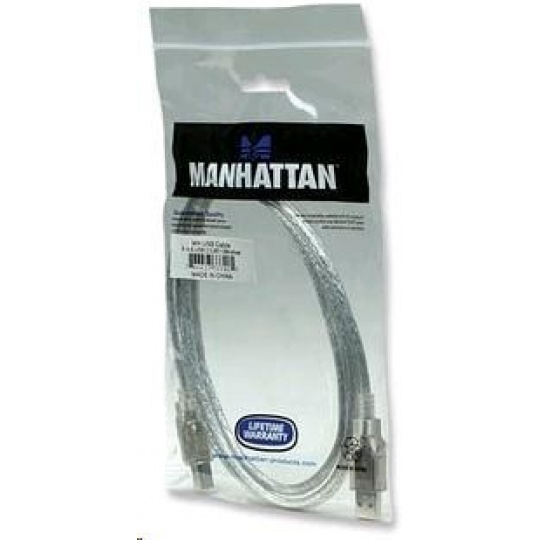 MANHATTAN Kabel USB 2.0 A-B propojovací 1,8m (stříbrný)