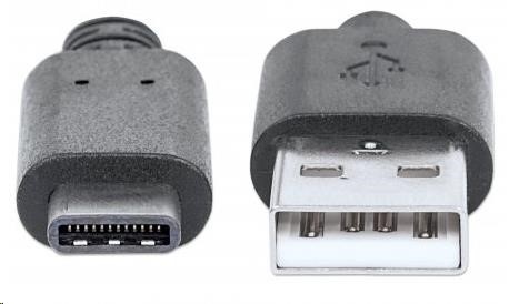 MANHATTAN Kabel USB 2.0 C, C Male / A Male, 1m, černý
