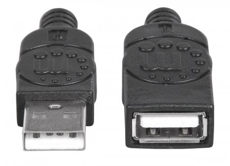 MANHATTAN Hi-Speed USB 2.0 Extension Cables easily lengthen connections between computers and USB-powered peripherals. Ideal for use with printers, keyboards, external enclosures and an expanding assortment of digital devices, MANHATTAN Hi-Speed USB 2.0 Extension Cables are engineered and constructed of quality materials that support data transfer rates up to 480 Mbps to deliver dependable, error-free transmissions over longer distances. Full foil and braided shielding, gold-plated contacts and molded boots with strain relief help assure maximum conductivity for the fast connection of USB-enabled devices with reduced EMI interference and minimal data degradation.