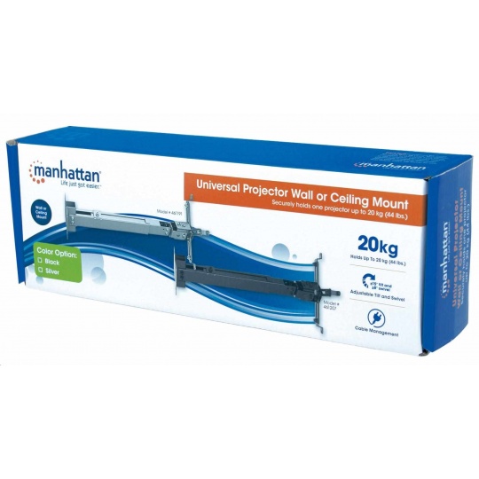 Constructed of lightweight, quality materials, Manhattan Universal Projector Ceiling or Wall Mounts fit a range of models with a secure, confident and balanced overhead or wall installation. In some cases, their internal cable management helps conceal unsightly cords and connections for a professional, finished appearance.