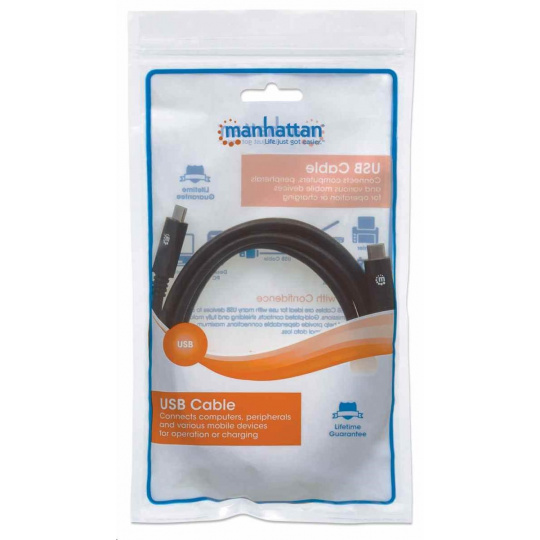 Manhattan USB-C kabel, USB 3.1, Gen 1, USB-C Male na USB-C Male, 5 Gbps, 2m, černá