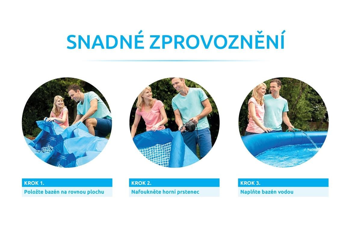 Bazén Tampa se řadí mezi nejprodávanější a nejoblíbenější bazény v České republice. Koupání ve vlastním bazénu si může dopřát opravdu každý. Tento konkrétní model poskytne velký koupací prostor. Předností bazénu Tampa je nízká cena, snadná údržba i rychlé zprovoznění. Stačí jen připravit místo na bazén, rozvinout bazénovou podložku, bazén rozbalit, nafouknout horní límec a začít napouštět vodu. Stoupající voda sama bazén postaví. Od vybalení bazénu můžete do 30 minut napouštět vodu. Bazén je nutné po skončení bazénové sezony vyčistit, vypustit a uklidit na suché, nemrznoucí místo. Správnou údržbou prodloužíte životnost bazénu. Pro snadné nafouknutí doporučujeme zakoupit ruční či elektrickou pumpu.
