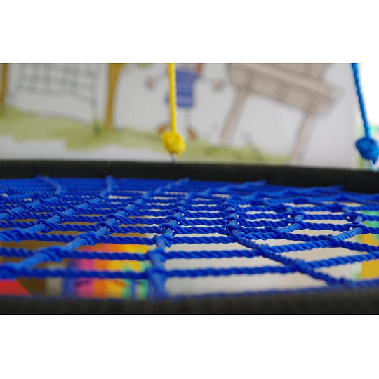 Závěsná houpačka ve tvaru kruhu je svým průměrem 100 cm a nosností až 150 kg ideální nejen pro děti, ale i dospělé. Velká sedací plocha houpačky nabízí volnost při houpání i dostatečný prostor pro lenošení. Houpačka je zavěšena na 4 délkově nastavitelných lanech, která jsou zakončena kovovými kroužky pro zavěšení na nosnou konstrukci.