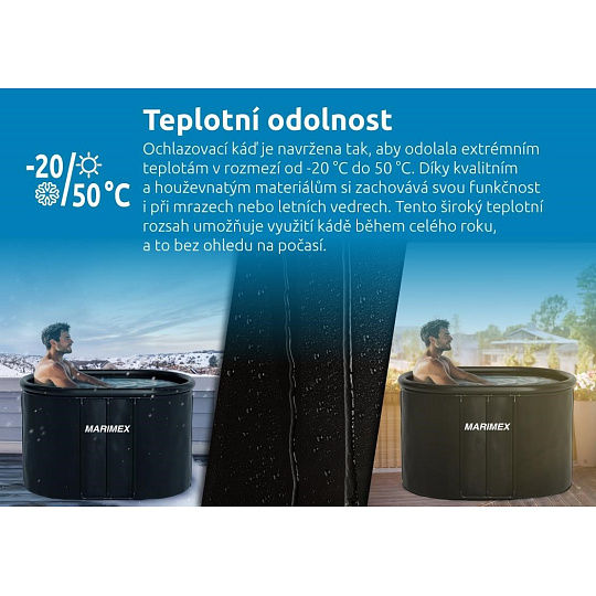 Káď je navržena tak, aby odolala teplotám od -20 °C do 50 °C. Díky tomu je ideální pro využití v jakémkoli počasí a ročním období.