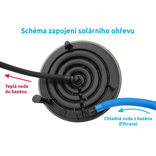 Součástí balení je solární ohřev, vrchní plastový kryt a trny na napojení 32 a 38 mm hadic.