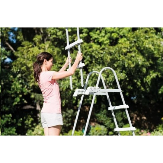 Schůdky mají odnímatelná stupátka - při jejich odnětí zamezíte nekontrolovatelnému vstupu dětí do bazénu. Maximální nosnost 136 kg.