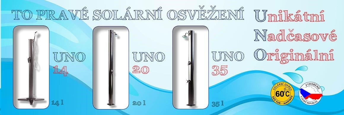 Zahradní sprcha UNO je určena pro venkovní použití pro zajištění ohřevu vody zcela zdarma za pomoci ekologického zdroje ohřevu - sluneční energie, kdy její tělo zároveň slouží jako solární kolektor. Pojme až 20 l vody. Pro sprchování musí být zahradní sprcha stále napojena na vodovodní řad. Není-li napojena, nelze se sprchovat. Horní sprchovací hlavice je vybavena kloubem pro polohování. Pokud je sprcha odpojena a je uzavřen ventil, nedochází k úniku vody. Sprcha se kotví pomocí 4 šroubů (nejsou součástí balení) pevně k zemi, čímž je zajištěna její perfektní stabilita..... více