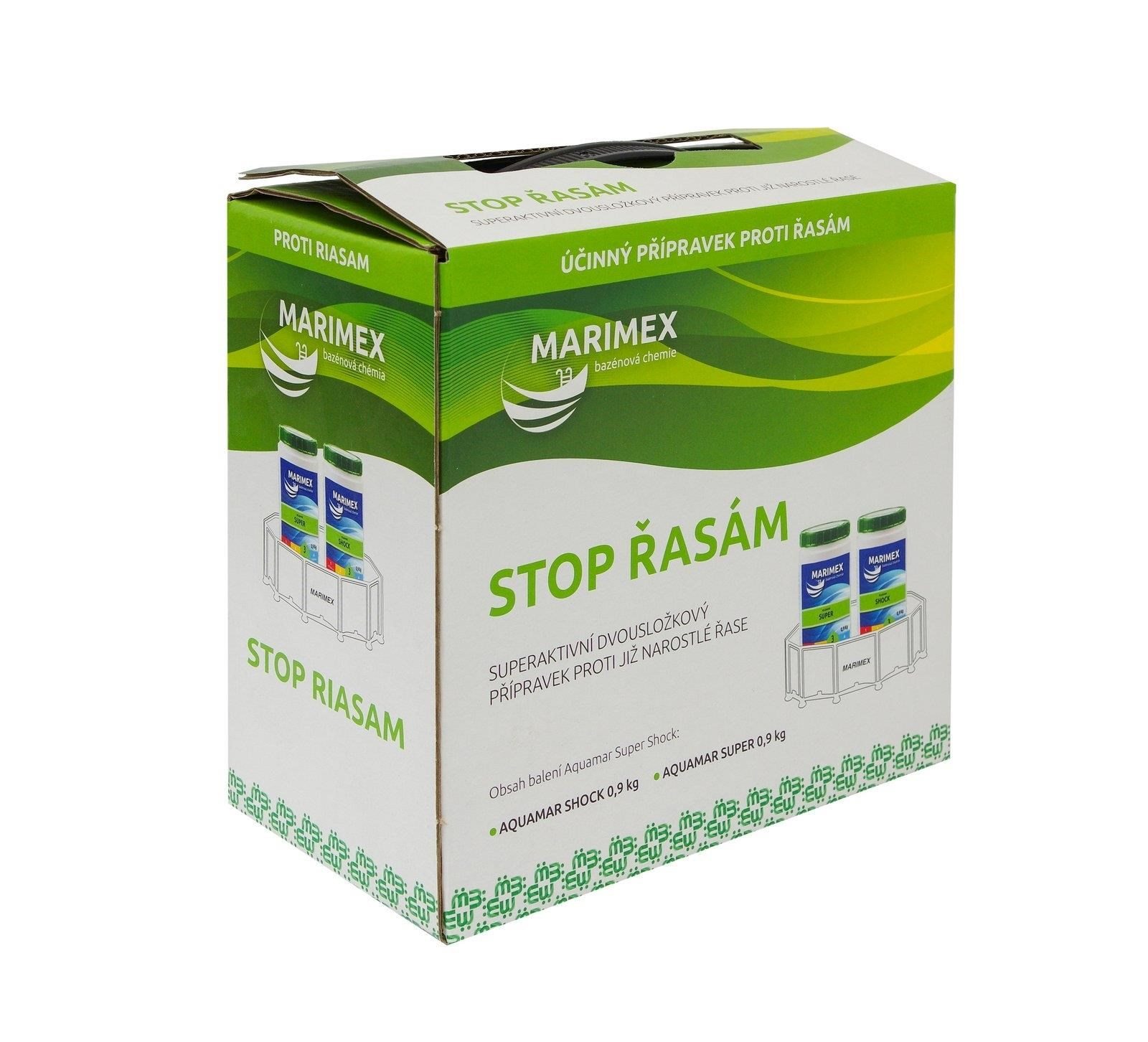 Marimex Super Chlor Šok je superaktivní dvousložkový prostředek proti již narostlé řase. Tento přípravek odstraní i černou řasu. Bublinky stoupající k hladině strhávají a nabalují řasy na sebe a vynášejí je s sebou na hladinu. Zneškodněné řasy z hladiny odstraní skimmer..... více