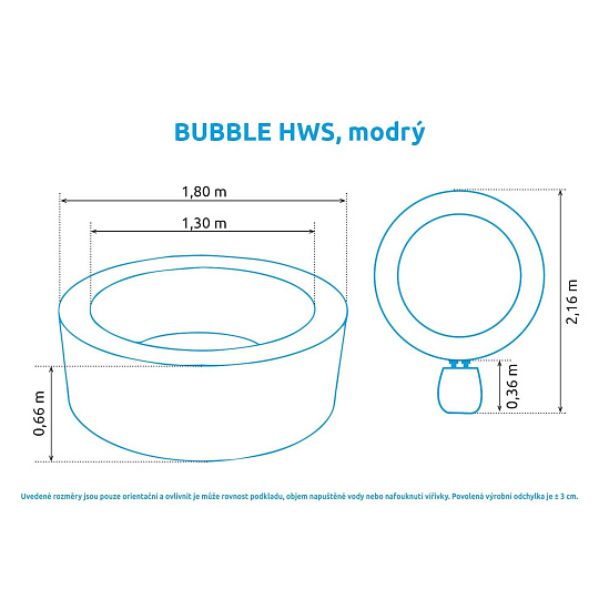 - Vnější průměr: 180 cm (po naplnění vodou, tolerance ± 5%)