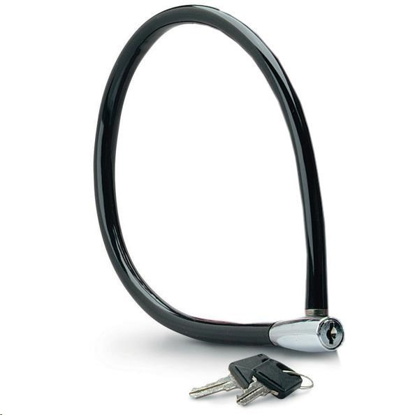 Ocelové kroucené lanko na klíč o délce 55cm a průměru 6mm má vinylový potah, který zabraňuje poškrábání. Obsahuje integrovaný zajišťovací mechanismus s válcovým klíčem, součástí balení každého kusu jsou 2 ks klíčů.
