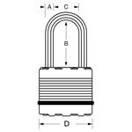 - Visací zámek o šířce 45 mm s tělem z vrstvené oceli zpevněný titanem pro vyšší odolnost a spolehlivost.