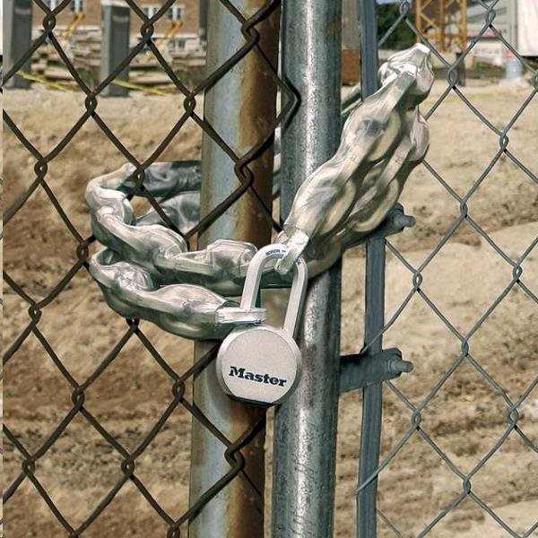 Řetěz s hranatými oky z kalené oceli o délce 1,5 m. Transparentní vinylový obal chránící řetěz proti korozi a mechanickému poškození. Vysoká odolnost proti přeřezání. Vhodné pro visací zámky Master Lock™.