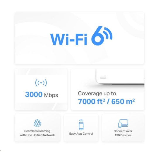- Pokrytí celé domácnosti – pokrytí prostoru až 650 m2 vysokorychlostní sítí Wi-Fi, která eliminuje mrtvé zóny Wi-Fi pokrytí ve vaší domácnosti.