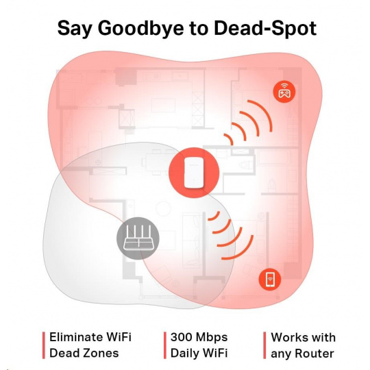 - Stálá Wi-Fi s rychlostí 300 Mbit/s — dopřejte si rychlou a stabilní Wi-Fi síť s rychlostí až 300 Mbit/s, která vyhoví vašim každodenním potřebám