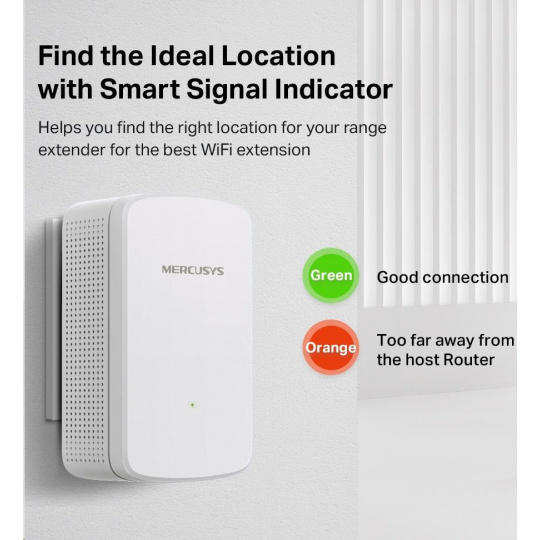 - Ukazatel signálu – barevný LED indikátor vám pomůže najít správné umístění extenderu signálu, aby bylo Wi-Fi pokrytí co nejlepší