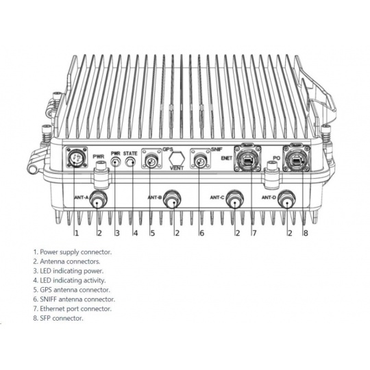 Jednotky mají funkce, jako je napájení telekomunikací -48V DC, SFP port, gigabitový ethernetový port, vestavěnou bleskojistku a dokonce podporuje EPC, pracuje zcela samostatně (bez centrálního síťového jádra) až s 32 klienty.