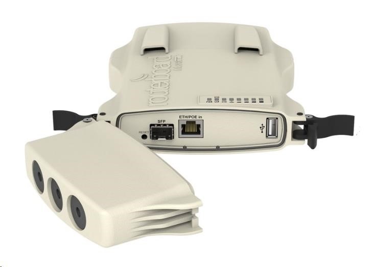 Popis produktu Díky podpoře bezdrátového protokolu 802.11ac NetMETAL 5 2x2 MIMO umožňuje použít modulační rychlost až 866Mbps, 256-QAM modulaci a 20/40/80MHz šířku kanálu. Jedná se o veliký skok, kdy protokol 802.11ac otevírá lidem nové možnosti v přenášení dat bezdrátově. NetMETAL je zcela novým produktem ve vodotěsném krytu. Jeho robustní konstrukce je provedena pro nejtěžší podmínky, ale zároveň je snadno otevíratelný a může být snadno otevřen/zavřen jednou rukou. Pevné hliníkové pouzdro funguje také jako spolehlivý chladič pro výkonné integrované rádio. Obsah balení • Zařízení • Napájecí adaptér 24V/1.2A • Pasivní Gigabitový PoE injektor • Kovový stahovací pásek • Přichycení na DIN lištu Technické parametry Bezdrátové vlastnosti Vysílací výkon [dBm]:30 Bezdrátové frekvence:5 GHz WiFi standardy:802.11a, 802.11n, 802.11ac Přenosová rychlost - 5GHz [Mb/s]:866 5GHz MIMO:2 x 2 Typ antény:Odnímatelná Konektory a rozhraní VF konektory:(2) RSMA female Rychlost LAN:(1) 10/100/1000Mbps Gigabit LAN:Ano Optické rozhraní:(1) 1000Mbps Počet miniPCI-e slotů:1 Slot na SIM kartu:Ano Počet SIM slotů:1 USB:Ano Napájení Napájení přes PoE:8 .. 30V DC Typ napájení:PoE Typy PoE:PoE-In (pouze) Max. spotřeba energie [W]:17 Fyzické charakteristiky Provedení:Venkovní Provozní teplota [°C]:-40 až 70 Šířka [mm]:143 Výška [mm]:247 Hloubka [mm]:48 Hardware CPU:QCA9557 Frekvence CPU [MHz]:720 Počet CPU jader:1 Interní uložiště [MB]:128 RAM [MB]:128 Software Operační systém:RouterOS - L4 Výchozí IP adresa:192.168.88.1 Výchozí jméno a heslo:admin / -.