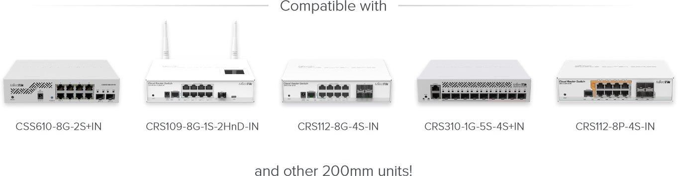 Popis produktu Rackmount kit RMK-2/10 umožňuje instalaci dvou menších zařízení MikroTik s šířkou 200mm do tradičních 19 palcových datových rozvaděčů. Případně můžete natrvalo odstranit delší část z obou držáku a nainstalovat pouze jedno MikroTik zařízení s šířkou 200mm do klasického 10 palcového racku. Seznam kompatibilních zařízení • CSS610-8G-2S+IN • CRS109-8G-1S-2HnD-IN • CRS112-8G-4S-IN • CRS310-1G-5S-4S+IN • CRS112-8P-4S-IN Obsah balení • (2) Držák • Šroubky Technické parametry Fyzické charakteristiky Velikost:10", 19" Provedení:Rackmount Materiál:Hliník.