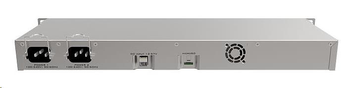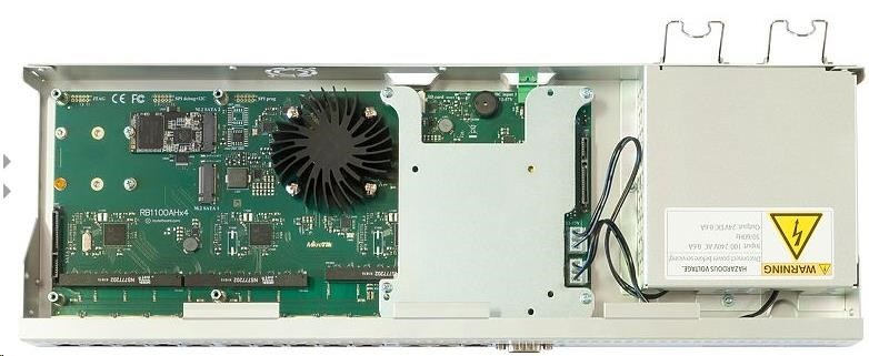 Balení obsahuje: RB1100AHx4 v hliníkovém krytu do 1U, integrovaný napájecí zdroj, 2x napájecí kabel, SATA kabel, M.2 SSD 60GB, úchyty do rozvaděče