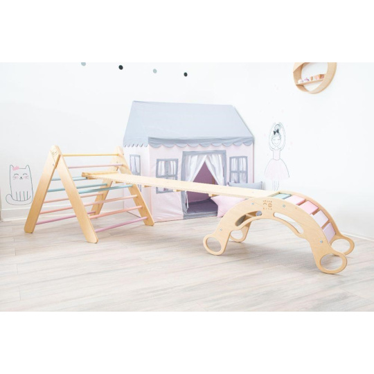 Montessori duhová houpačka 5in1 natur, lakované okraje, duhové desky