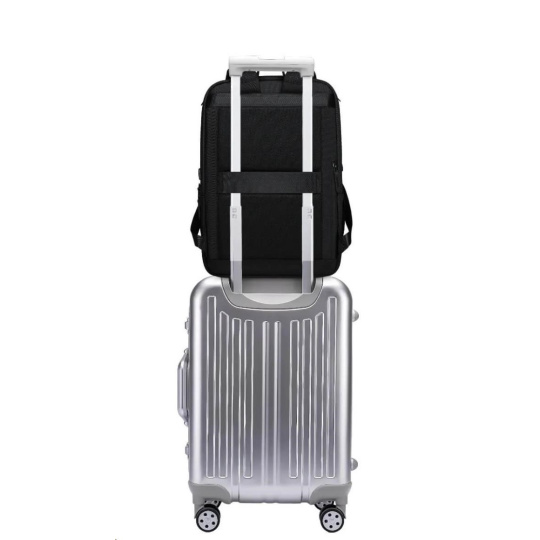 Volná záda se při cestování mohou hodit. Batoh lze díky držáku připevnit ke kufru.