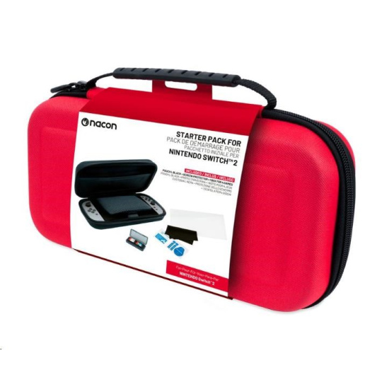 Tato sada příslušenství od společnosti Nacon určená pro herní konzoli Nintendo Switch 2 obsahuje pevné přepravní pouzdro, tvrzené ochranné sklo a praktické pouzdro pro uložení dalších herních karet.
