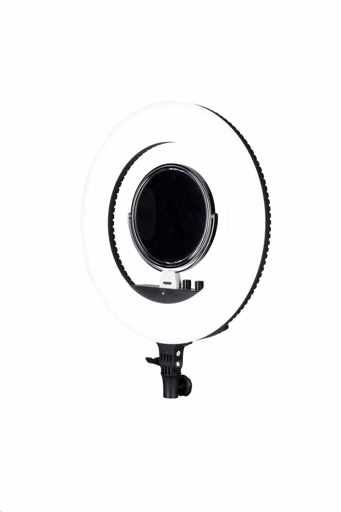 LED kruhové světlo Halo 18 lze napájet dodávaným AC adaptérem. Díky standardnímu 5/8" závitu může být kruhové světlo upevněno na téměř jakýkoli světelný stativ (není součástí dodávky). Tato sada zahrnuje řadu příslušenství včetně držáku na mobilní telefon a oboustranného make-up zrcátka, z nichž jedno z nich lze upevnit přímo do středu kruhového světla.