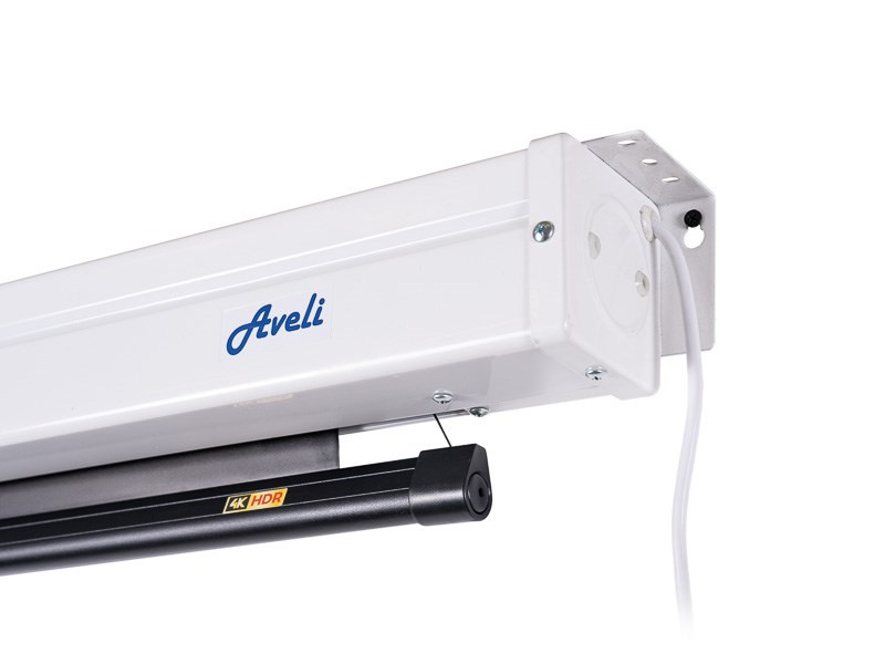 Nástěnné elektrické projekční plátno AVELI PREMIUM s dálkovým ovládáním je možné instalovat na zeď nebo strop. Vhodné pro projektory se světelným výkonem 4000 ANSI a vyšší. Využití plátna je univerzální.