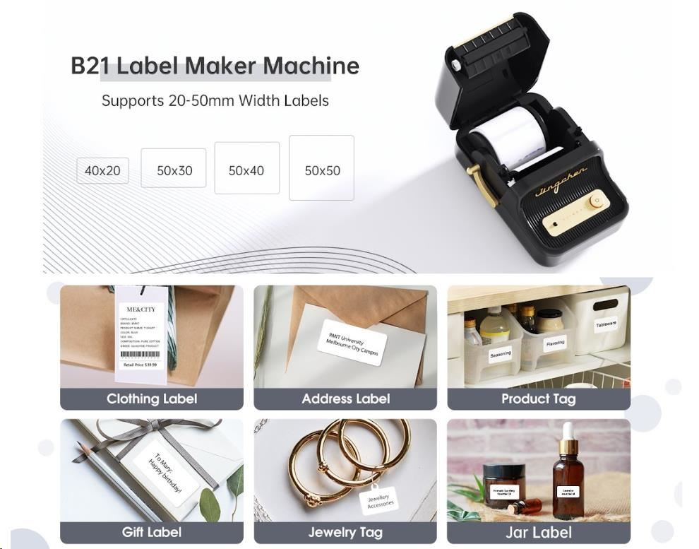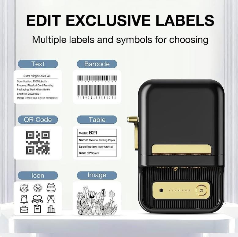 Zapomeňte na zdlouhavé a komplikované procesy tisku etiket. S NIIMBOT B21S je tisk etiket hračkou díky její bezdrátové technologii a vynikajícím funkcím. Tato přenosná tiskárna etiket je vybavena dobíjecí lithiovou baterií, která vám umožní tisknout kdekoli a kdykoli budete potřebovat po dobu 4 až 5 hodin. S NIIMBOT B21S můžete jednoduše označovat věci v kanceláři, škole, obchodě a na mnoho dalších místech. Její kompatibilita s PC a se systémy Android a iOS znamená, že můžete tisknout přímo ze svého smartphonu nebo tabletu, což zajišťuje maximální pohodlí a efektivitu.