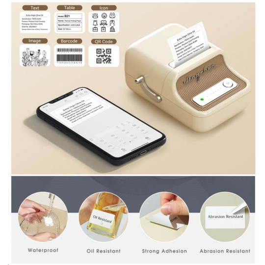 Zapomeňte na zdlouhavé a komplikované procesy tisku etiket. S NIIMBOT B21S je tisk etiket hračkou díky její bezdrátové technologii a vynikajícím funkcím. Tato přenosná tiskárna etiket je vybavena dobíjecí lithiovou baterií, která vám umožní tisknout kdekoli a kdykoli budete potřebovat po dobu 4 až 5 hodin. S NIIMBOT B21S můžete jednoduše označovat věci v kanceláři, škole, obchodě a na mnoho dalších místech. Její kompatibilita s PC a se systémy Android a iOS znamená, že můžete tisknout přímo ze svého smartphonu nebo tabletu, což zajišťuje maximální pohodlí a efektivitu.