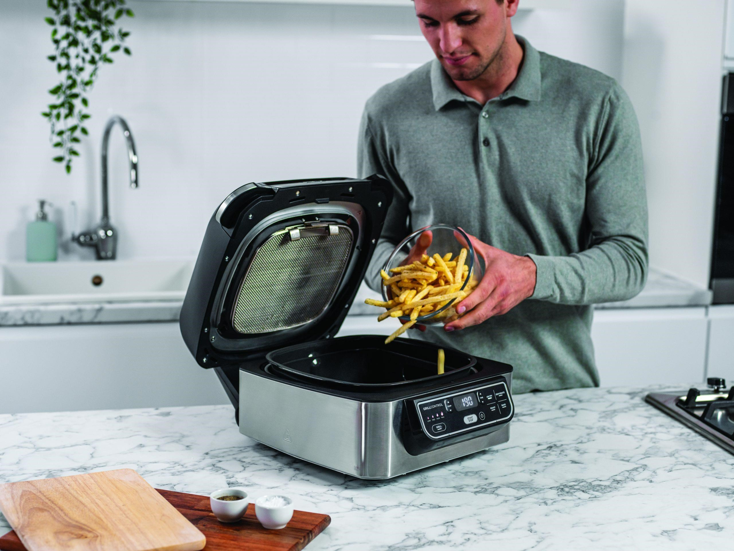 Proměňte gril v horkovzdušnou fritézu a připravte si lahodné dozlatova opečené hranolky, slané sladké brambory, křupavé kuřecí kousky a chutné hranolky - a to až se 75 % méně tuku než při běžných způsobech smažení*. Vychutnejte si stejně fantastickou chuť s minimálním množstvím oleje nebo bez něj.