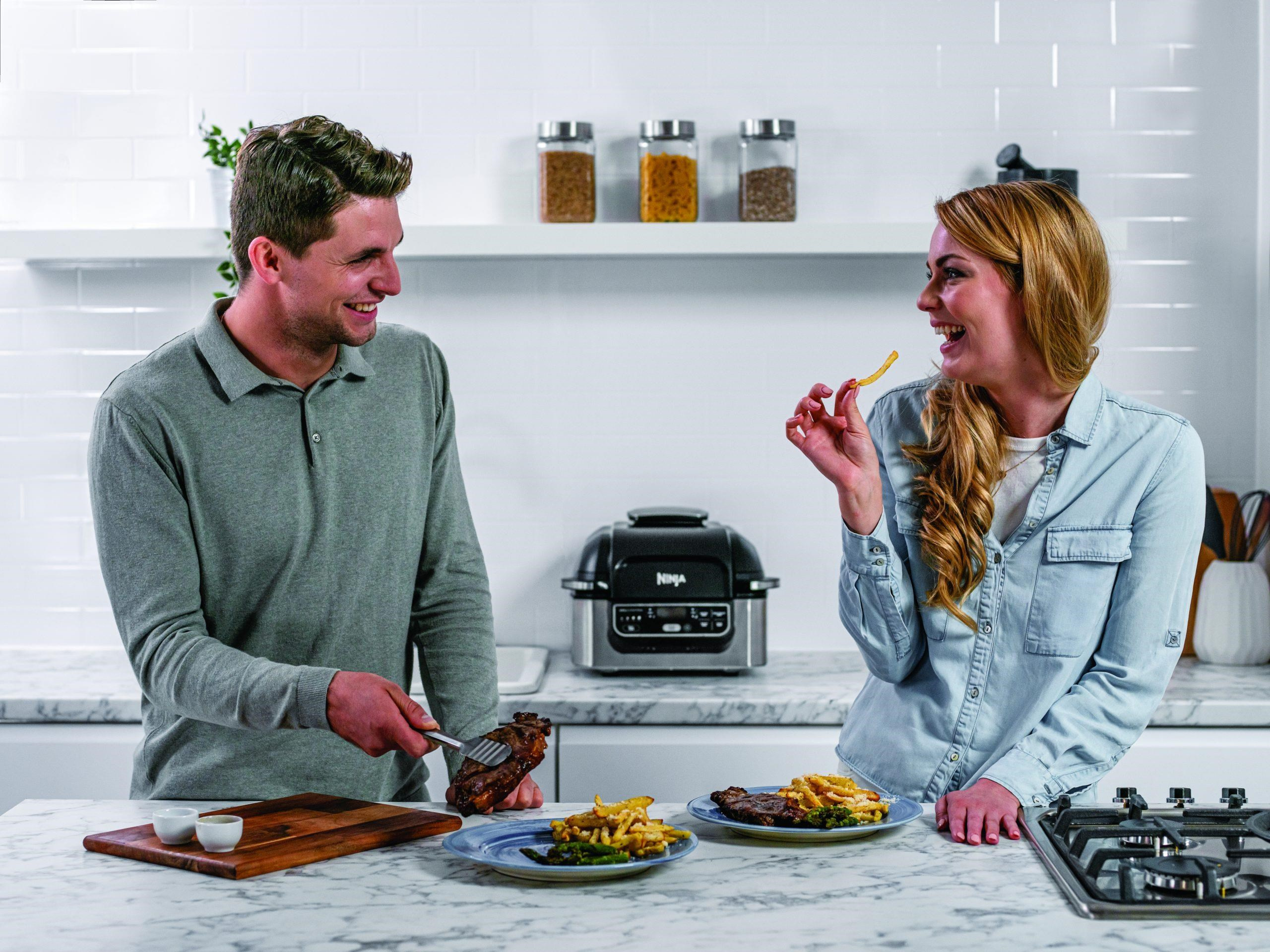 Představte si, že si ve vlastní kuchyni připravíte ryby, maso a zeleninu s lahodnou chutí grilované na dřevěném uhlí! S grilem a horkovzdušnou fritézou Ninja Foodi můžete snadno a rychle dodat svým oblíbeným pokrmům autentickou úpravu z grilu na dřevěném uhlí.