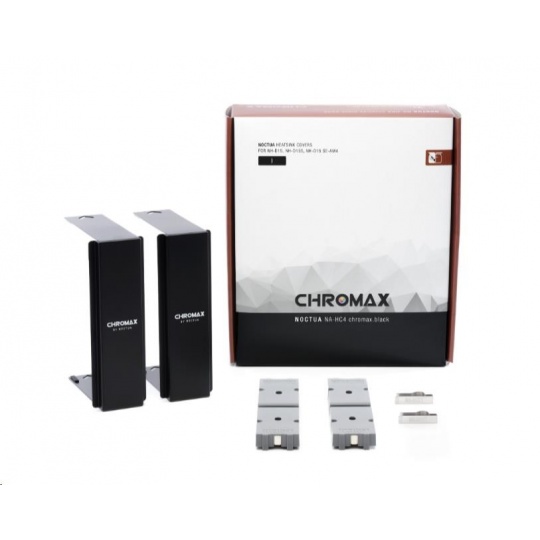 Kryty chladiče NA-HC4 chromax.black jsou doplňkovým příslušenstvím pro oceňované chladiče CPU NH-D15, NH-D15S a NH-D15 SE-AM4 od společnosti Noctua. Vyrobeny z vysoce kvalitního hliníku s černým práškovým nástřikem, umožňují uživatelům dodat chladiči elegantní, nenápadný vzhled, který se skvěle hodí do celočerných sestav a dobře ladí s mnoha dalšími oblíbenými barevnými schématy. Díky snadné a přímočaré instalaci změna vzhledu chladiče NH-D15(S) trvá jen několik minut a nevyžaduje ani jeho demontáž z procesoru. V kombinaci s ventilátory chromax.black.swap edice NF-A15 vám dva kryty NA-HC4 chromax.black dávají možnost proměnit váš NH-D15(S) v celočerný výkonný stroj, který vypadá stejně skvěle, jako chladí.