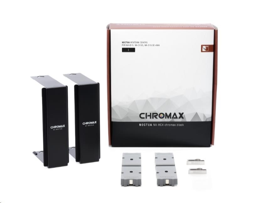 Kryty chladiče NA-HC4 chromax.black jsou doplňkovým příslušenstvím pro oceňované chladiče CPU NH-D15, NH-D15S a NH-D15 SE-AM4 od společnosti Noctua. Vyrobeny z vysoce kvalitního hliníku s černým práškovým nástřikem, umožňují uživatelům dodat chladiči elegantní, nenápadný vzhled, který se skvěle hodí do celočerných sestav a dobře ladí s mnoha dalšími oblíbenými barevnými schématy. Díky snadné a přímočaré instalaci změna vzhledu chladiče NH-D15(S) trvá jen několik minut a nevyžaduje ani jeho demontáž z procesoru. V kombinaci s ventilátory chromax.black.swap edice NF-A15 vám dva kryty NA-HC4 chromax.black dávají možnost proměnit váš NH-D15(S) v celočerný výkonný stroj, který vypadá stejně skvěle, jako chladí.
