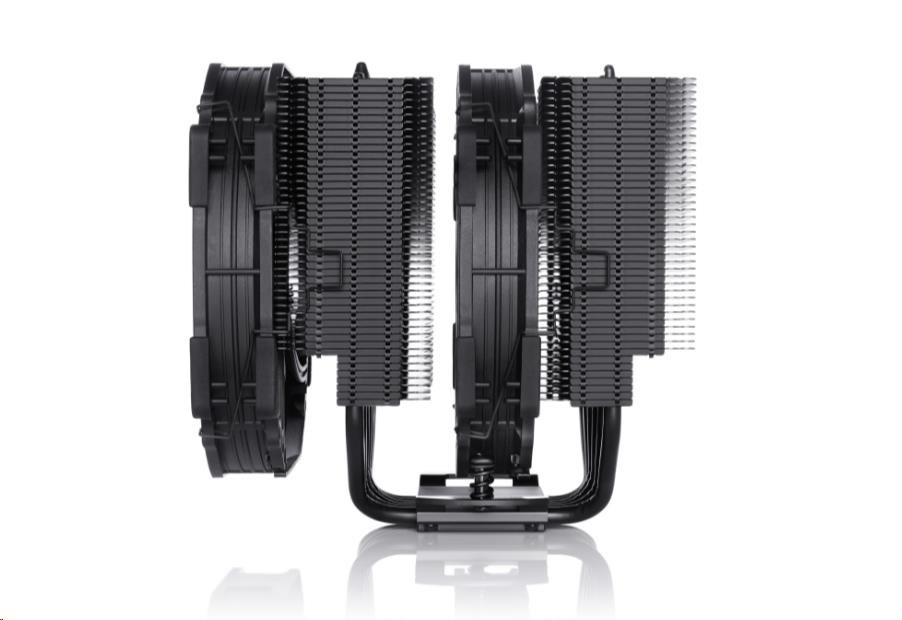 NH-D15 chromax.black je černá verze oceněného modelu NH-D15, špičkového tichého chladiče procesoru společnosti Noctua. Díky stejné osvědčené konstrukci chladiče dual-tower a ventilátorům NF-A15 PWM zůstává věrný úspěšnému NH-D15, který se vyrovná výkonu vodních chladičů typu all-in-one při zachování vynikajícího tichého provozu. Verze chromax.black s černými ventilátory a chladičem s černým povrchem zároveň kombinuje tyto přednosti s elegantním stealth vzhledem. NH-D15 chromax.black, doplněný o proslulý systém montáže SecuFirm2 do více socketů, tepelnou směs Noctua NT-H1 pro nadšence a plnou 6letou záruku výrobce, je luxusní volbou pro overclockery i tiché nadšence, kteří hledají chladič elitní třídy, který vypadá stejně skvěle jako chladí.