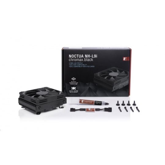 NH-L9i chromax.black je celočerná verze cenami ověnčeného nízkoprofilového chladiče NH-L9i pro HTPC a SFF buildy. Díky již ověřenému designu heatsinku a NF-A9x14 PWM větráku zůstává věrný úspěšné struktuře klasického NH-L9i, která kombinuje minimální prostorovou náročnost (výška jen 37mm) se silným výkonem, úžasnou tichostí provozu a 100% RAM a PCIe kompatibilitou. To vše v elegantním černém designu. Tuto dokonalost uzavírá známý SecuFirm2™ multi.socket systém, teplovodivá pasta NT-H1 od Noctuy a plná záruka. NH-L9i chromax.black je tak samozřejmou volbou, pokud hledáte kompaktní heatsink, který vypadá tak skvěle, jak chladí.