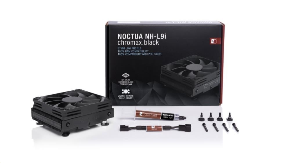 NH-L9i chromax.black je celočerná verze cenami ověnčeného nízkoprofilového chladiče NH-L9i pro HTPC a SFF buildy. Díky již ověřenému designu heatsinku a NF-A9x14 PWM větráku zůstává věrný úspěšné struktuře klasického NH-L9i, která kombinuje minimální prostorovou náročnost (výška jen 37mm) se silným výkonem, úžasnou tichostí provozu a 100% RAM a PCIe kompatibilitou. To vše v elegantním černém designu. Tuto dokonalost uzavírá známý SecuFirm2™ multi.socket systém, teplovodivá pasta NT-H1 od Noctuy a plná záruka. NH-L9i chromax.black je tak samozřejmou volbou, pokud hledáte kompaktní heatsink, který vypadá tak skvěle, jak chladí.