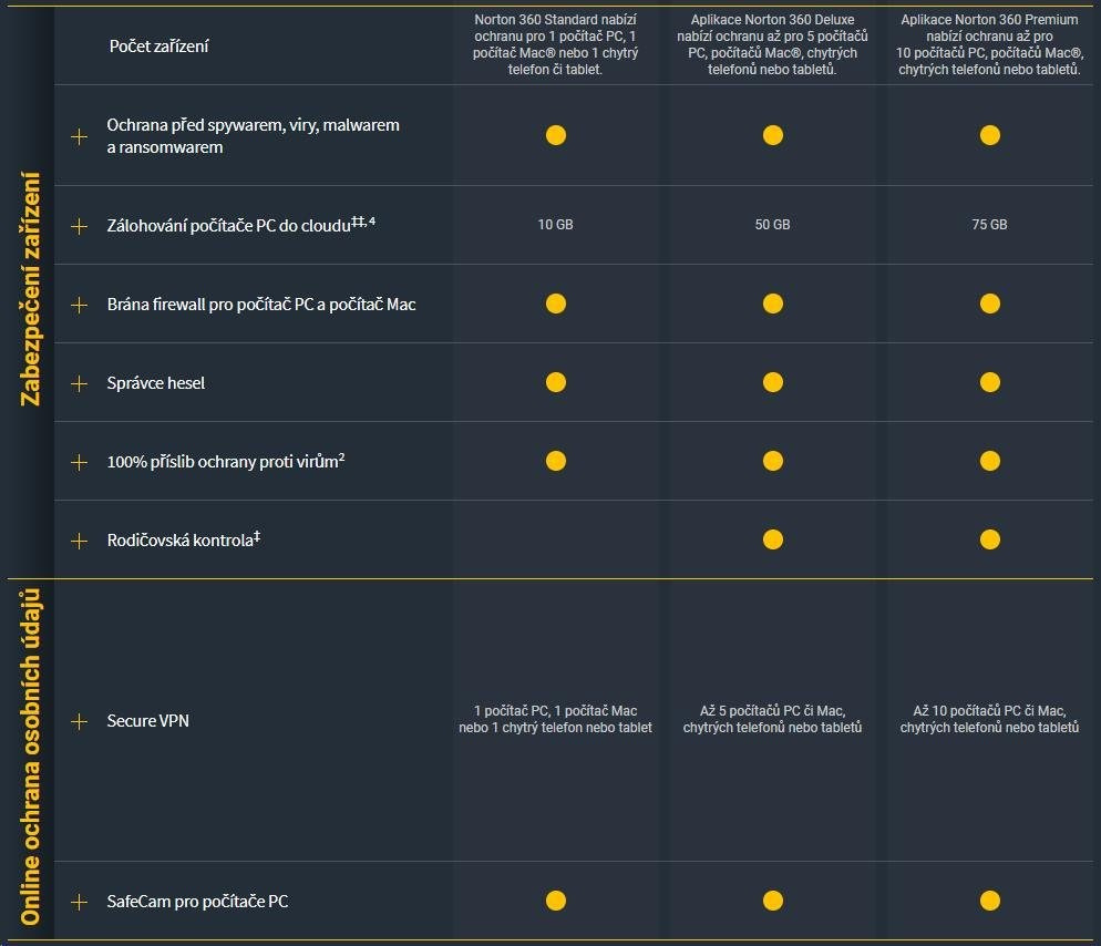 Norton 360 Deluxe poskytuje komplexní ochranu před malwarem až pro 5 počítačů PC, počítačů Mac, zařízení se systémem Android nebo iOS, plus funkci rodičovské kontroly, která pomáhá chránit vaše děti online, správce hesel pro ukládání a správu hesel a funkci zálohování PC do cloudu.