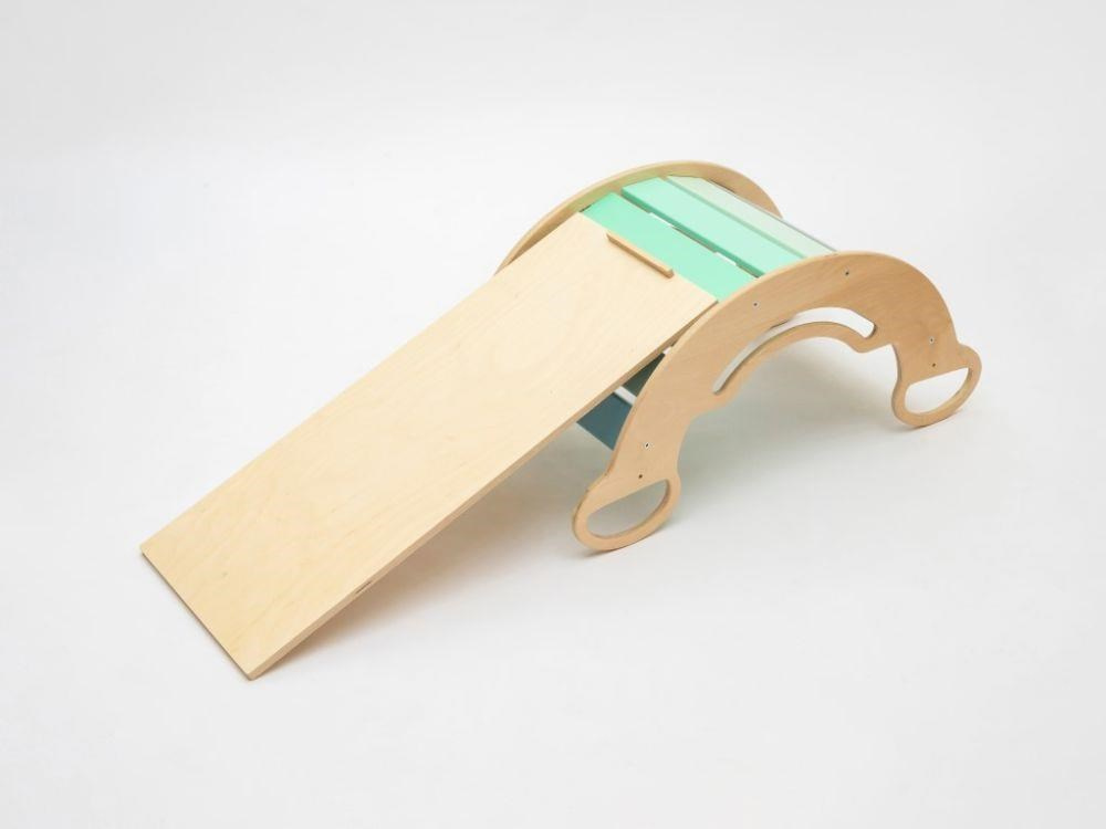 Kvalitní dřevěné oboustranné prkno (pouze k houpačce SMILE) má všestranné využití. Z jedné strany zábavná skluzavka, po které se děti sklouznou třeba na měkkou žíněnku, na druhé straně lezecká deska s úchyty, která rozvíjí pohybové dovednosti vaší holčičky i chlapce. Oboustranná deska je doplňkem k Montessori houpačce SMILE. Položená na boční hraně houpačky smile vytvoří dětem praktický stoleček ke svačince i k malování. Oboustranné prkno není možné používat s Montessori houpačkami 5in1 ELIS DESIGN. Prkno je širší než naše duhové a dřevěné houpačky. PRKNO JE DOPLŇKEM POUZE K MONTESSORI HOUPAČKÁM SMILE, kterou promění v dětský stoleček..