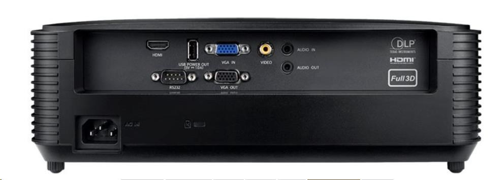 - Připojení: Vstupy 1 x HDMI 1.4a 3D podpora, 1 x VGA (YPbPr / RGB), 1 x kompozitní video, 1 x audio 3,5 mm