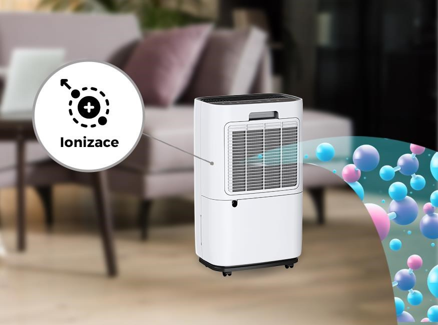 Ionizace v odvlhčovači Dehum 1 má několik důležitých funkcí, které přispívají ke zlepšení kvality vzduchu v místnosti. Ionizace k tomuto procesu přispívá tím, že záporně nabité ionty interagují s molekulami vody ve vzduchu a způsobují, že se kapky vody srážejí do větších částic. Odvlhčovač vzduchu s ionizací tak zlepšuje nejen vlhkost vzduchu, ale také jeho čistotu a může mít pozitivní vliv na prostředí v místnosti a pohodu lidí.