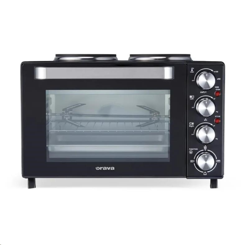 Orava Elektra-X28 elektrická trouba s dvouplotýnkou, 28 L, 2600 W, grilovací rošt, černá