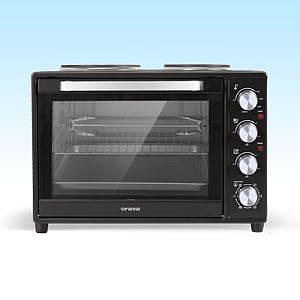 Popis produktu: Elektrická trouba se dvěma plotnami Přepínač funkcí: horní a spodní ohřev + ventilátor, horní ohřev + ventilátor, horní a spodní ohřev, horní ohřev + gril, horní a dolní ohřev + gril + ventilátor Vnitřní objem trouby 38 l Funkce trouby a vařiče současně Grilovací rošt a odkapávací plech součástí příslušenství Příkon grilu 600 W Příkon trouby 2 000 W Litinové desky o průměru 155 mm (600 W) a 185 mm (1 000 W) Samostatná regulace jednotlivých ploten Plynulé nastavení teploty pečení od 100 °C do 230 °C Elektrický termostat Příkon Max. 3 600 W Napájení: 230V~ 50Hz.
