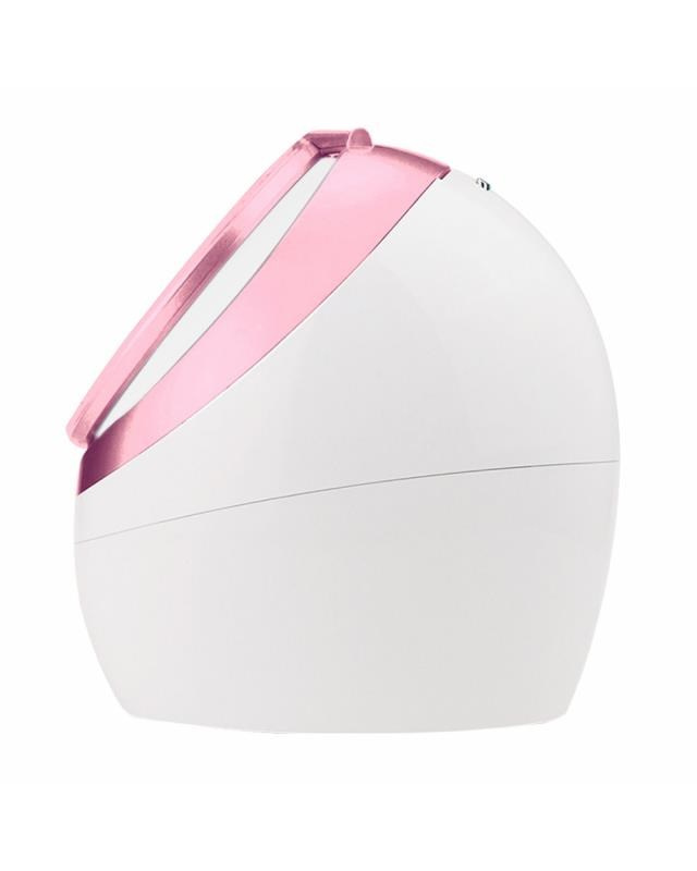 Do 80 ml nádržky naberete vodu, zapojíte ji do elektrické zásuvky, zapnete - a domácí wellness pro pleť právě začal. Sauna vytváří vodní páru o teplotě 40 °C. Pokožku hloubkově vymasíruje a hydratuje ji, otevře póry pro efektivnější čištění a připraví pleť pro přijímání živin a blahodárných esencí z výživných krémů a masek a kúr, které si po inhalaci a vyčištění pleti nanesete na obličej a dekolt.Kosmetické zrcátko