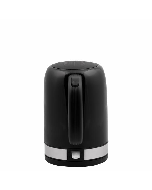 Automatická varná konvice, černá lesklá barva, Objem vody: max. 1,7 l, Napájení: 220 - 240V ~ 50/60 Hz, 1 850 - 2 200W, VDE zástrčka, Varná nádoba na odnímatelném 360 ° otočném podstavci, Topné těleso překryté deskou z ušlechtilé oceli, automatické vypnutí, Ochrana před ohřevem bez vody, ukazatel napájení, S indikátorem hladiny vody.