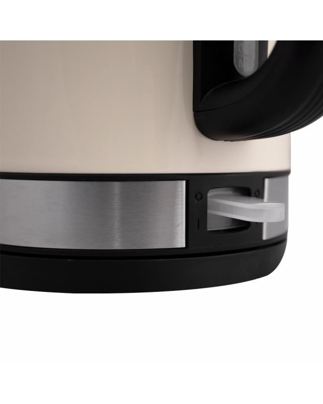 Automatická varná konvice, krémová barva, Objem vody: max. 1,7 l, Napájení: 220 - 240V ~ 50/60 Hz, 1 850 - 2 200W, VDE zástrčka, Varná nádoba na odnímatelném 360 ° otočném podstavci, Topné těleso překryté deskou z ušlechtilé oceli, automatické vypnutí, Ochrana před ohřevem bez vody, ukazatel napájení, S indikátorem hladiny vody.
