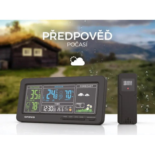 Meteostanice Orava Meteo-1 vás spolehlivě informuje o tom, jaká teplota je v interiéru i za okny vašeho domova. Na přehledem LCD displeji si kromě teploty a vlhkosti přečtete informace o čase, datu a předpovědi počasí.